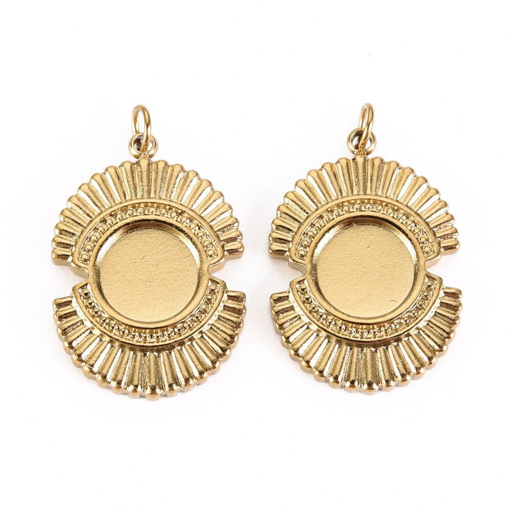 Pendentif support cabochon acier inoxydable doré 22.5 mm support plateau cabochon 8 mm