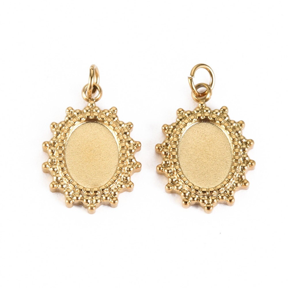 Pendentif support cabochon en acier inoxydable doré 16 mm support plateau cabochon 8x6 mm