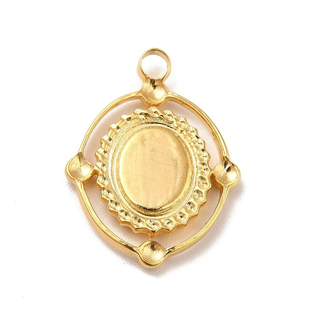 Pendentif support cabochon en acier inoxydable doré 21 mm support plateau cabochon 8,5 x 6,5 mm