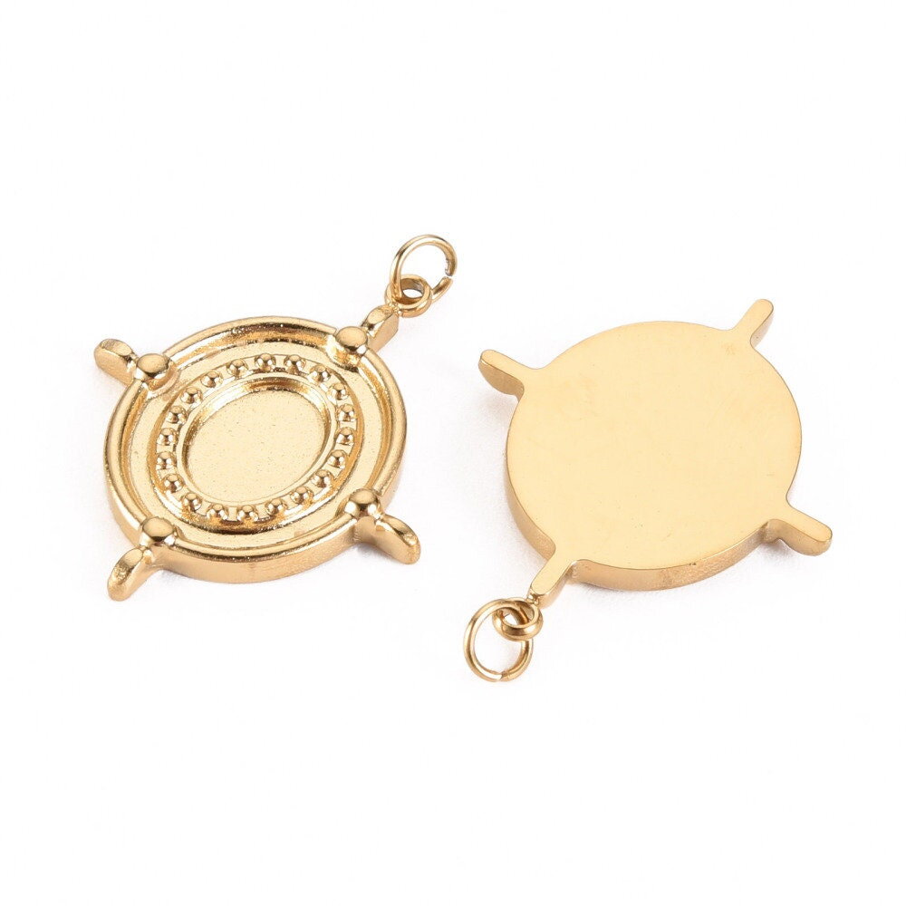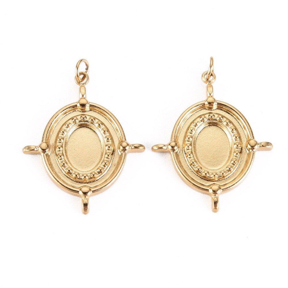 Pendentif support cabochon en acier inoxydable doré 24,5 mm support plateau cabochon 8x6 mm