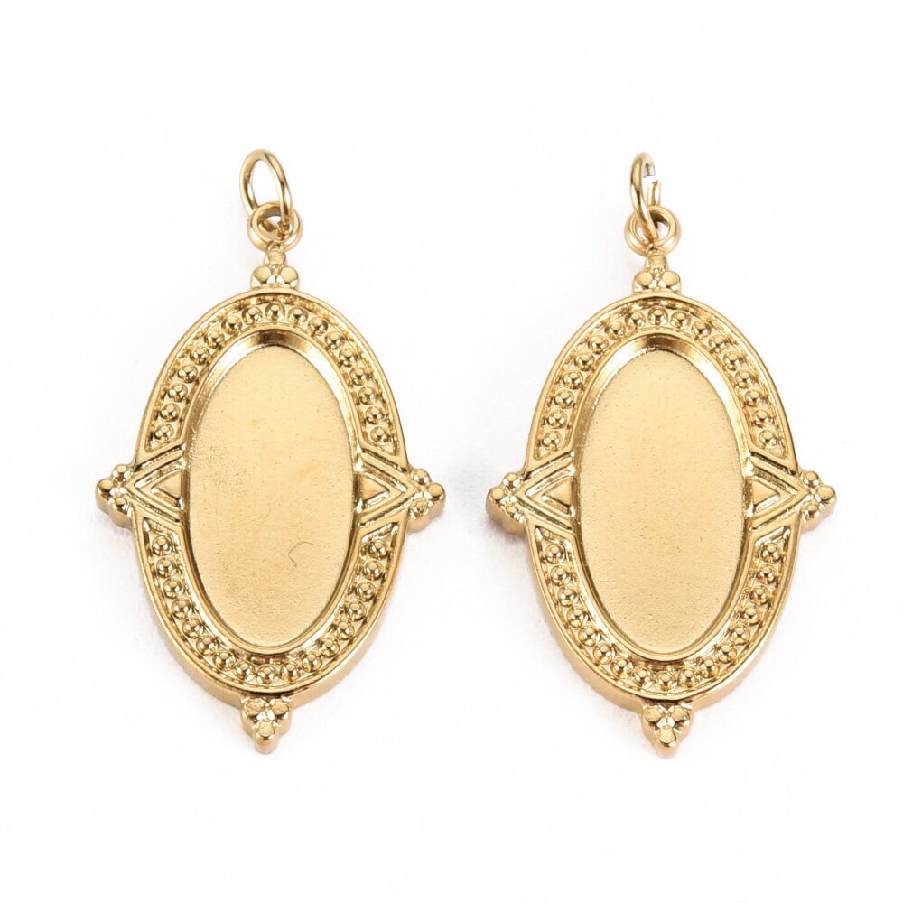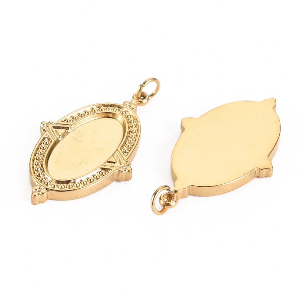Pendentif support cabochon en acier inoxydable doré 25 mm support plateau cabochon 7x14 mm