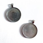 Lot de 2 pendentifs en métal argenté, support pour cabochon de 3 cm.