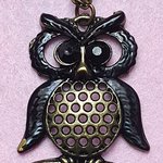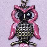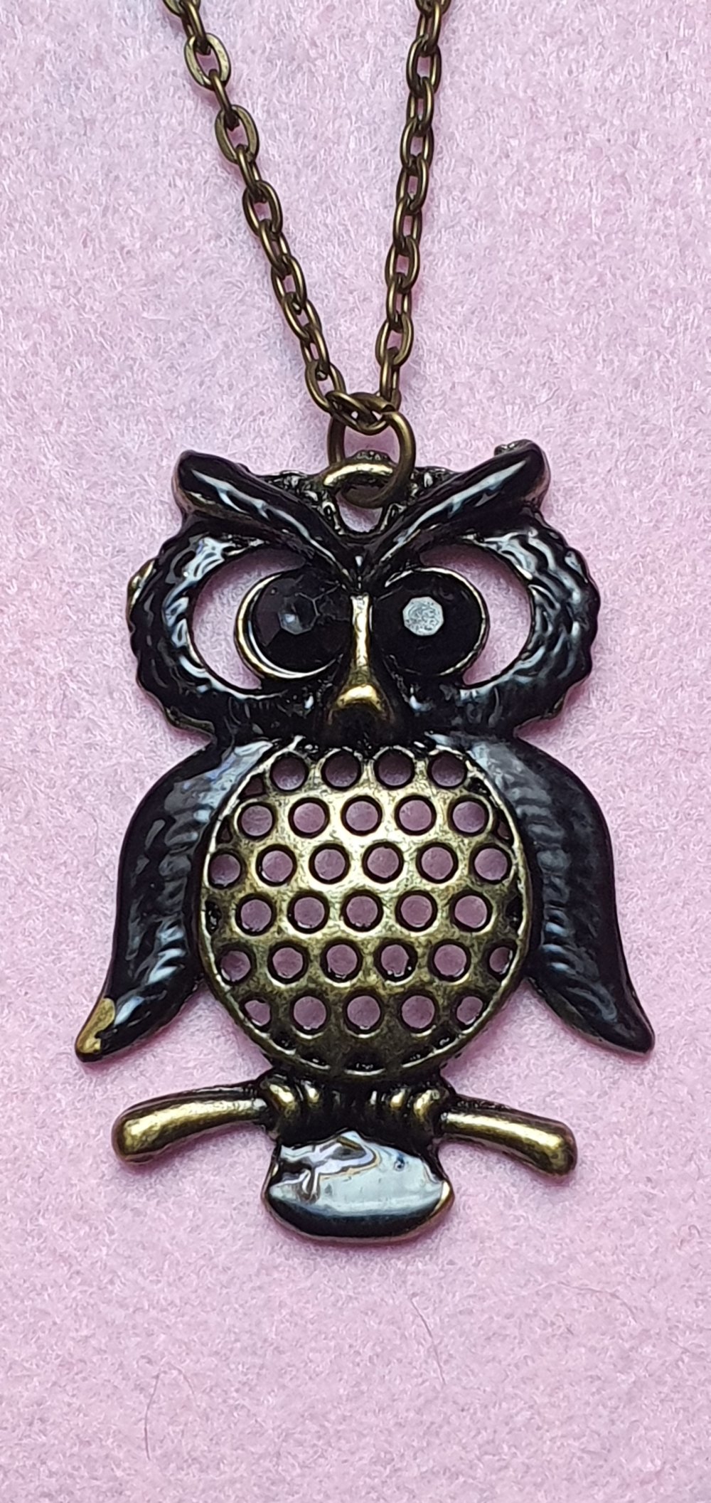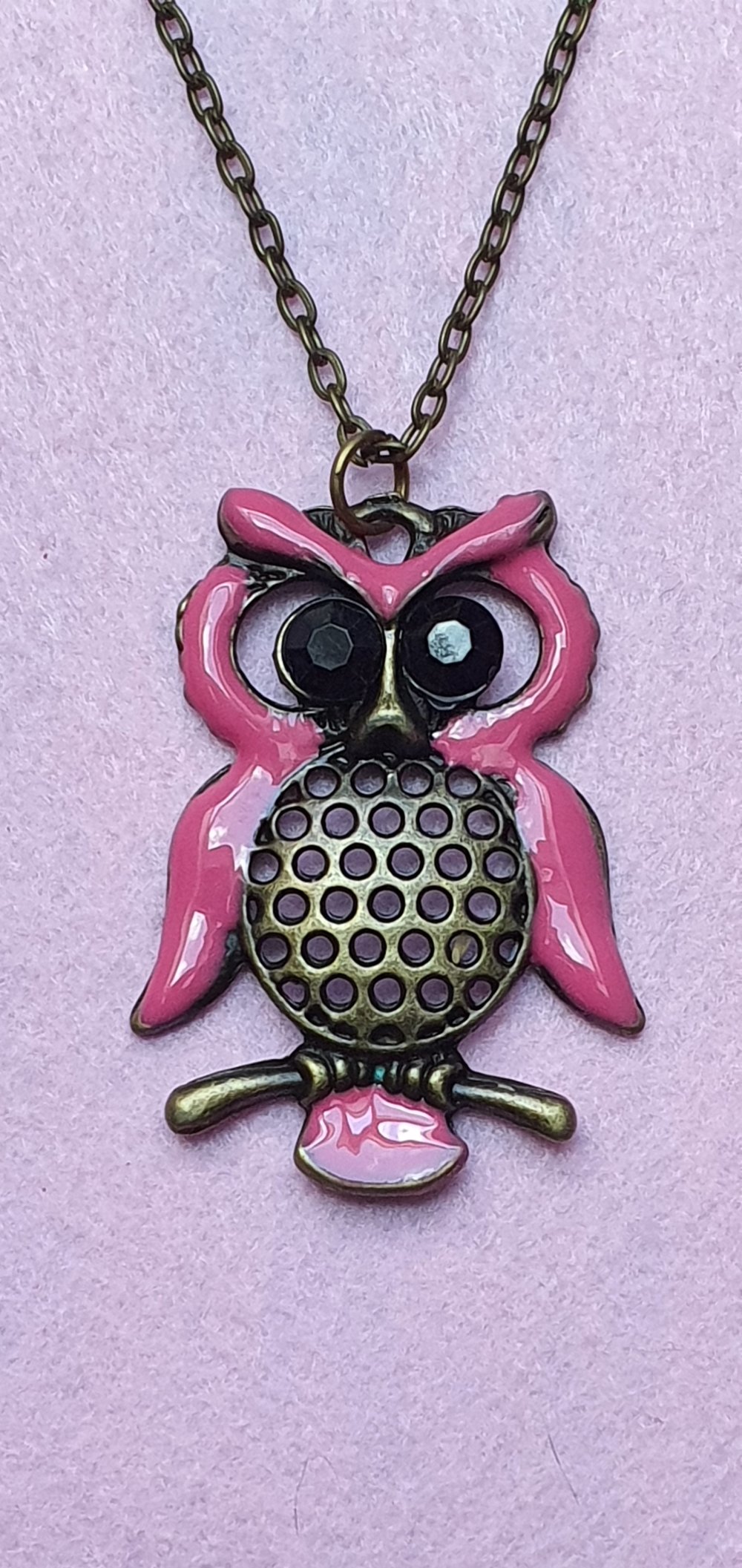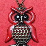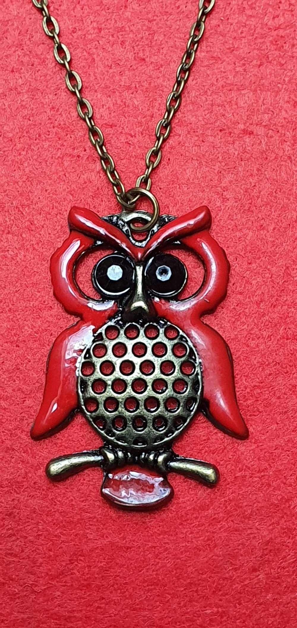 1 collier hibou chouette rouge 47.5x34mm bronze émail