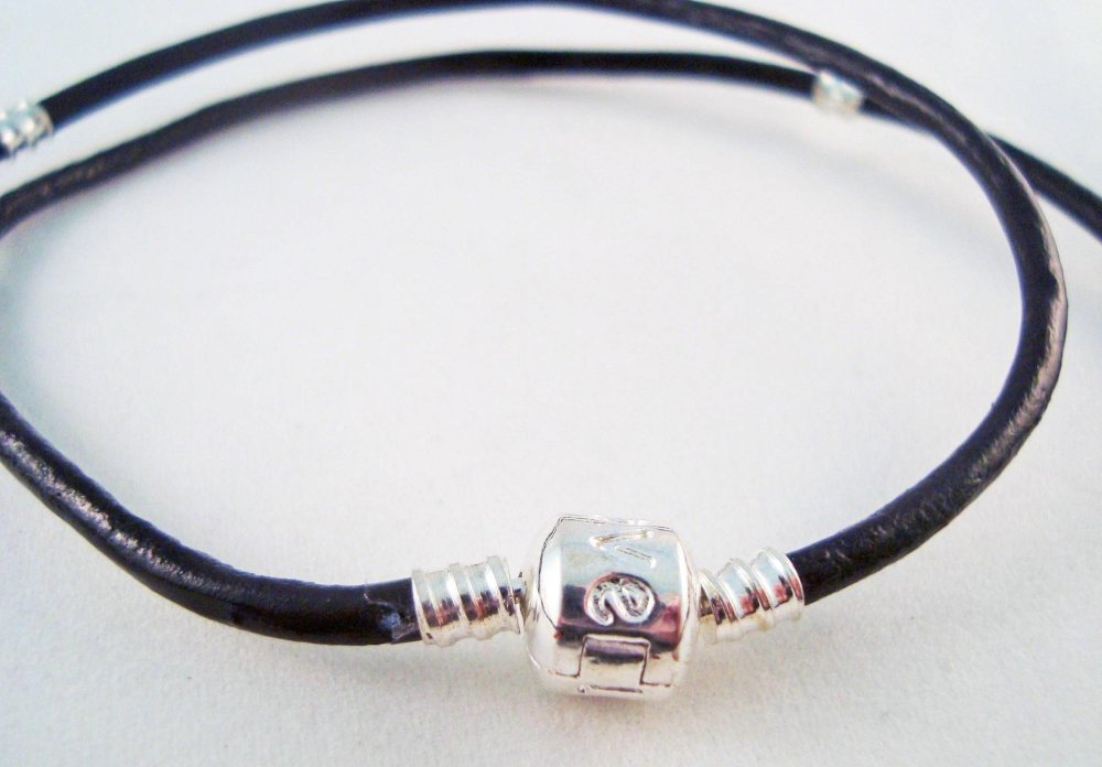 Collier en cuir noir avec fermoir argenté "LOVE", Longueur 55cm, Épaisseur 3mm.