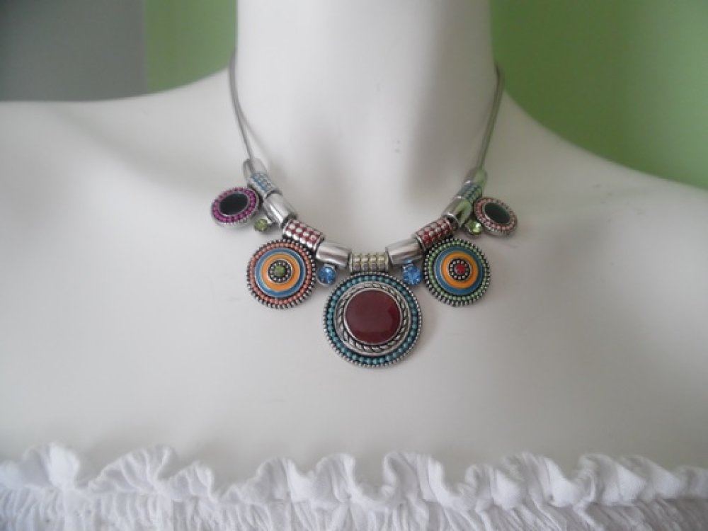 Collier ethnique multicolore argent tibétain émail strass de.........