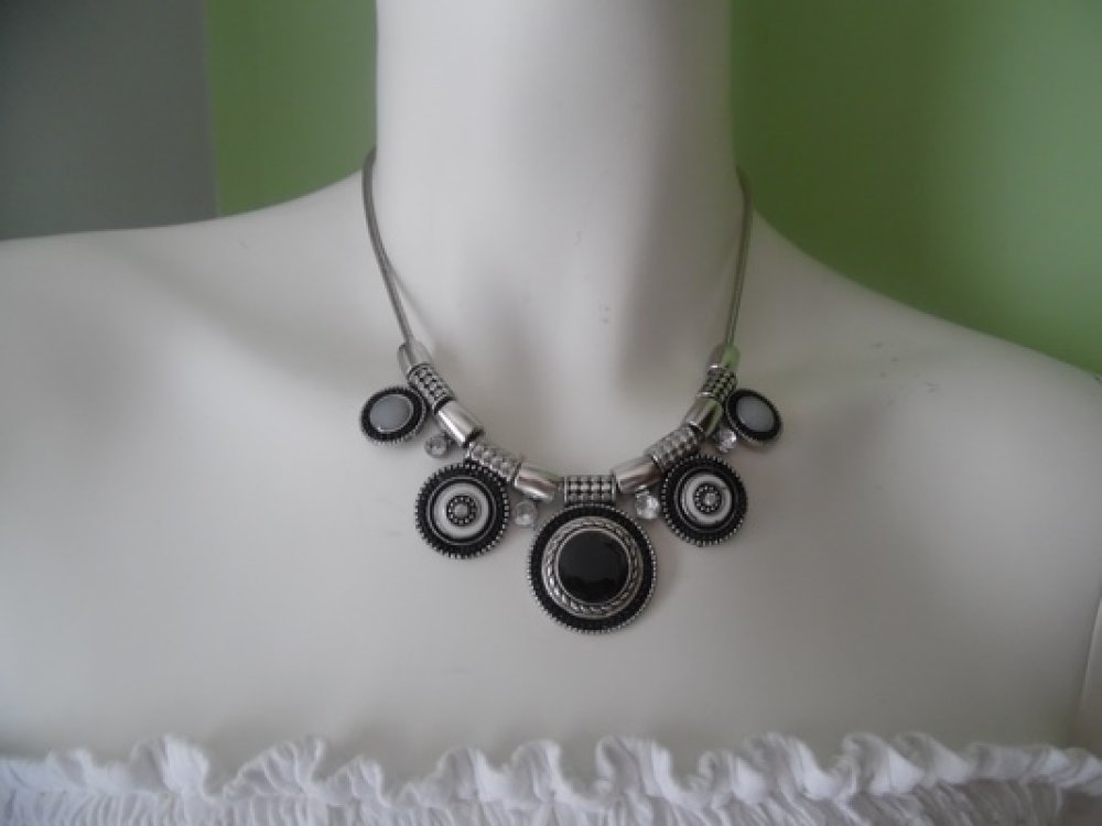 Collier ethnique noir et blanc argent tibétain émail strass de......