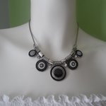 Collier Style Ethnique, Perles/Pendentifs en Argent Tibétain/Email noir et blanc sur chaine de 41 cm de 2.4mm Serpentine Pendentifs de 3.5x2.8cm - 2.24x2.1cm - 2.24x1.6cm