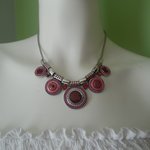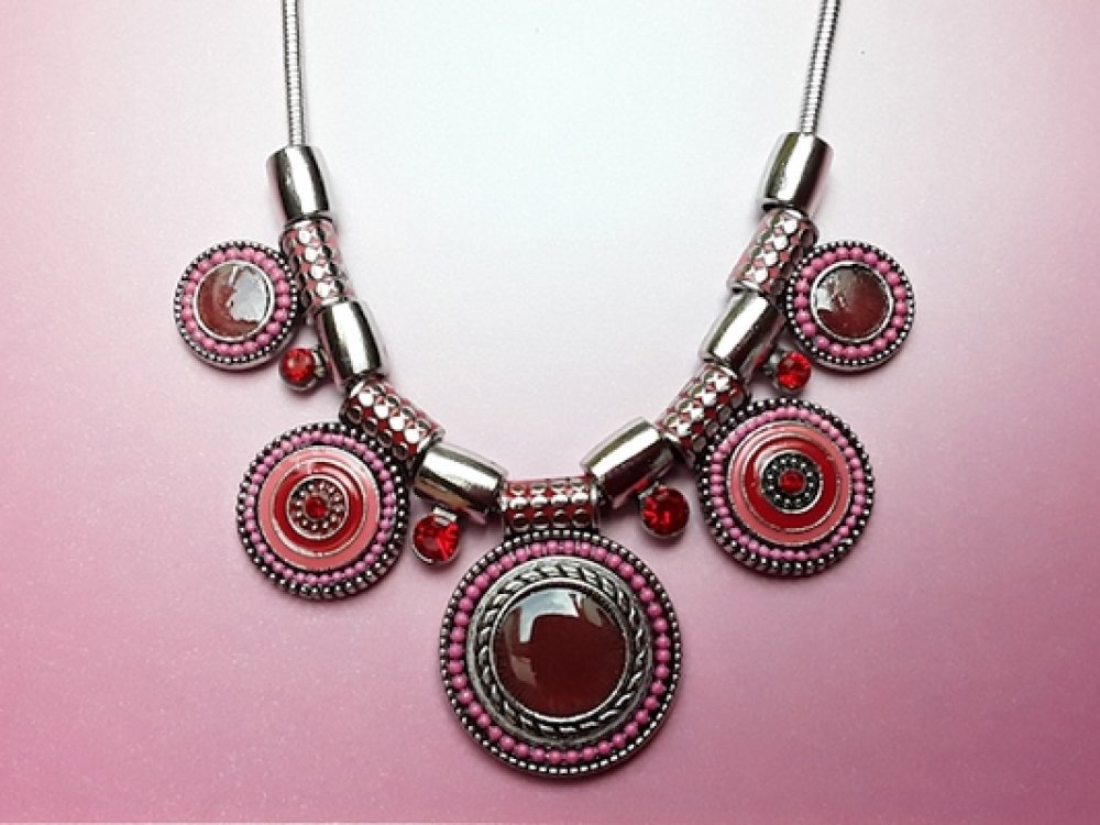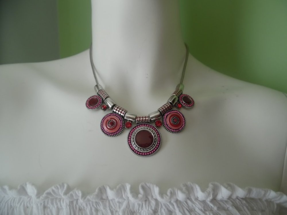 Collier ethnique rouge bordeaux rose argent tibétain émail strass de......