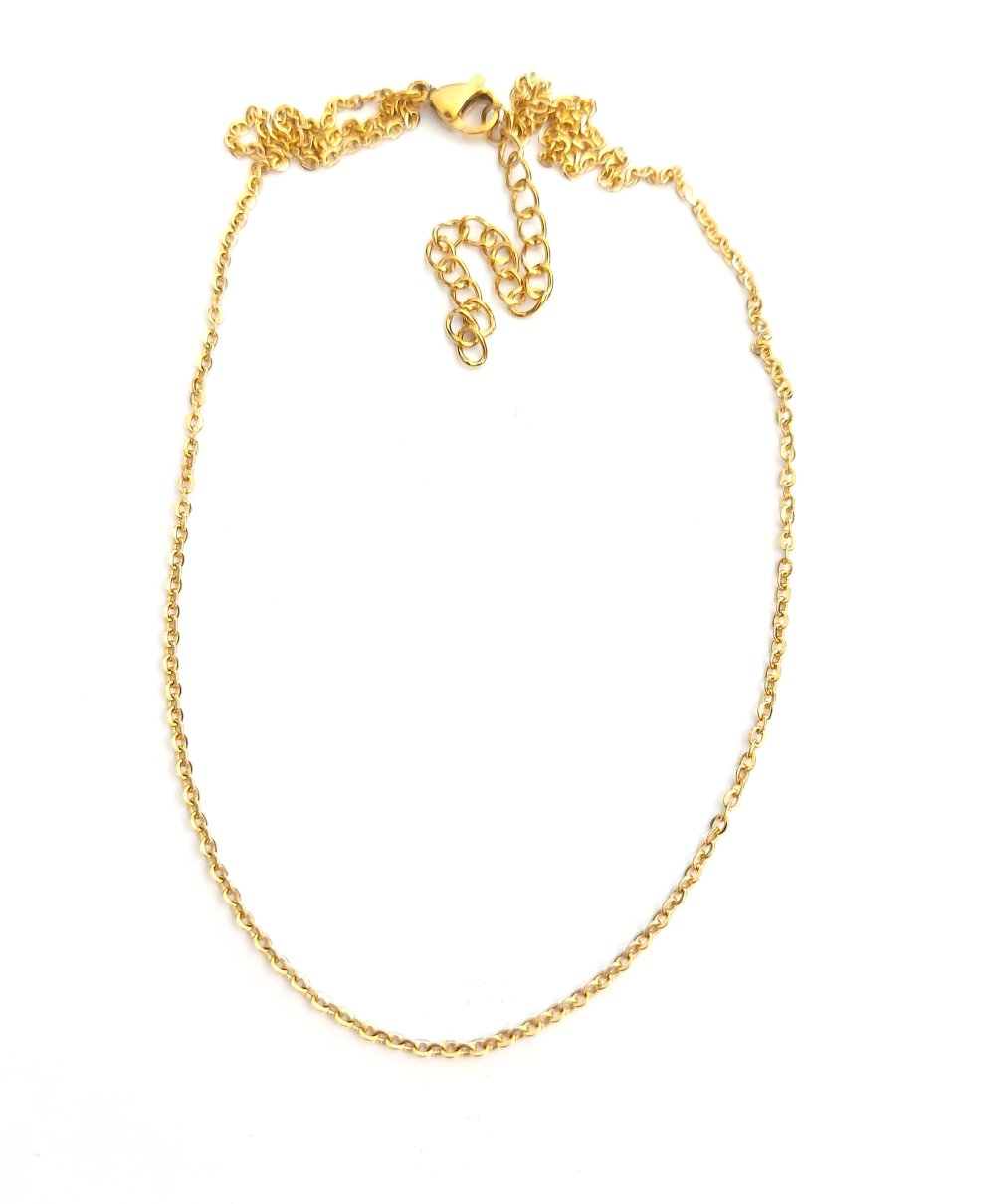 Un collier maille forçat en acier inoxydable doré. Dimensions : 40cm