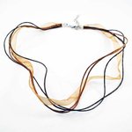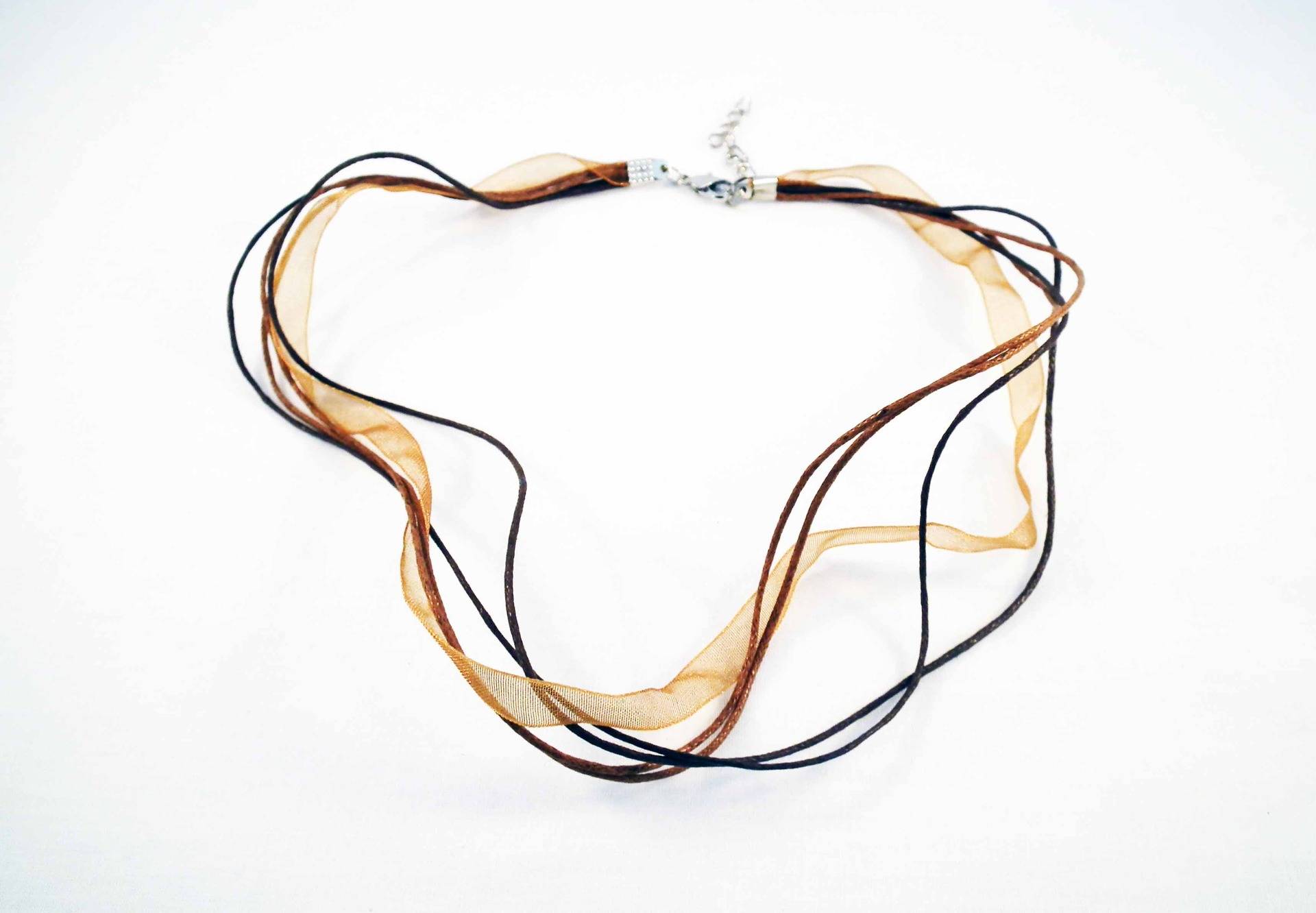Collier Organza Ruban et Coton Teintes de Marron avec fermoir à mousqueton argenté