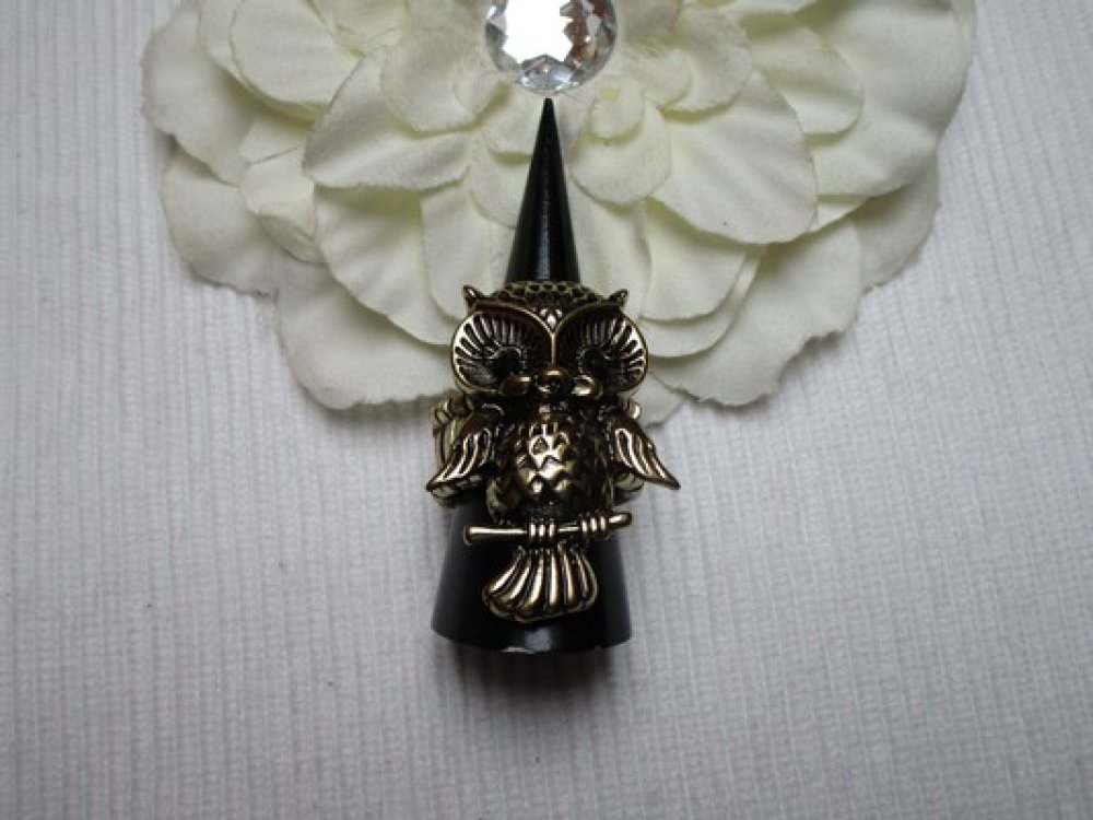 1 Bague hibou chouette doré vieilli strass 4x2.8cm