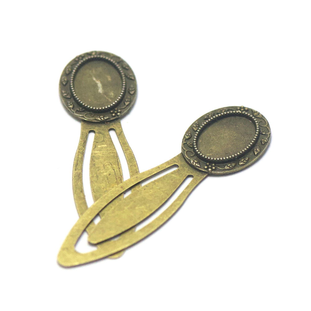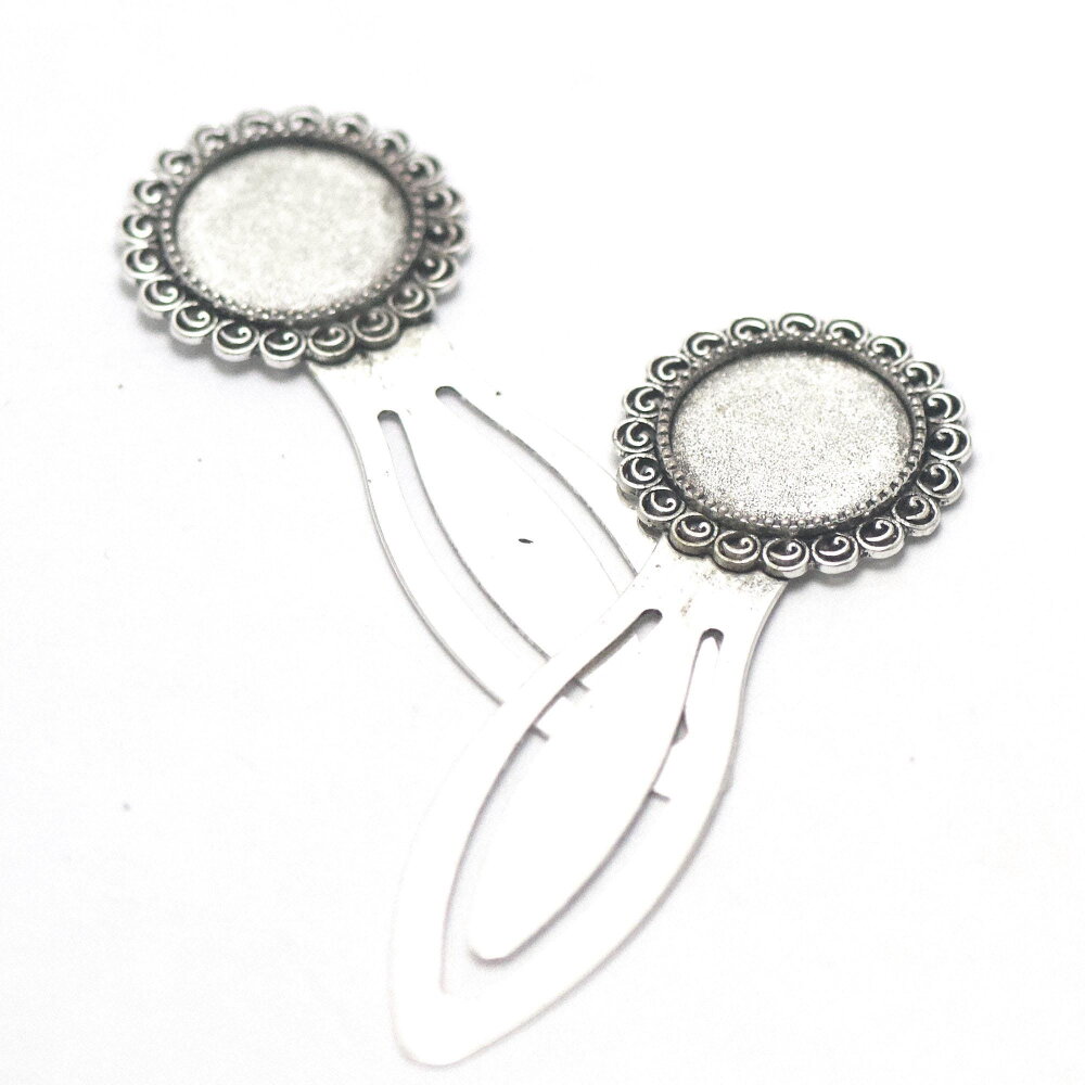 A - 2 marques page support cabochon 18 mm, argenté/bronze 028
