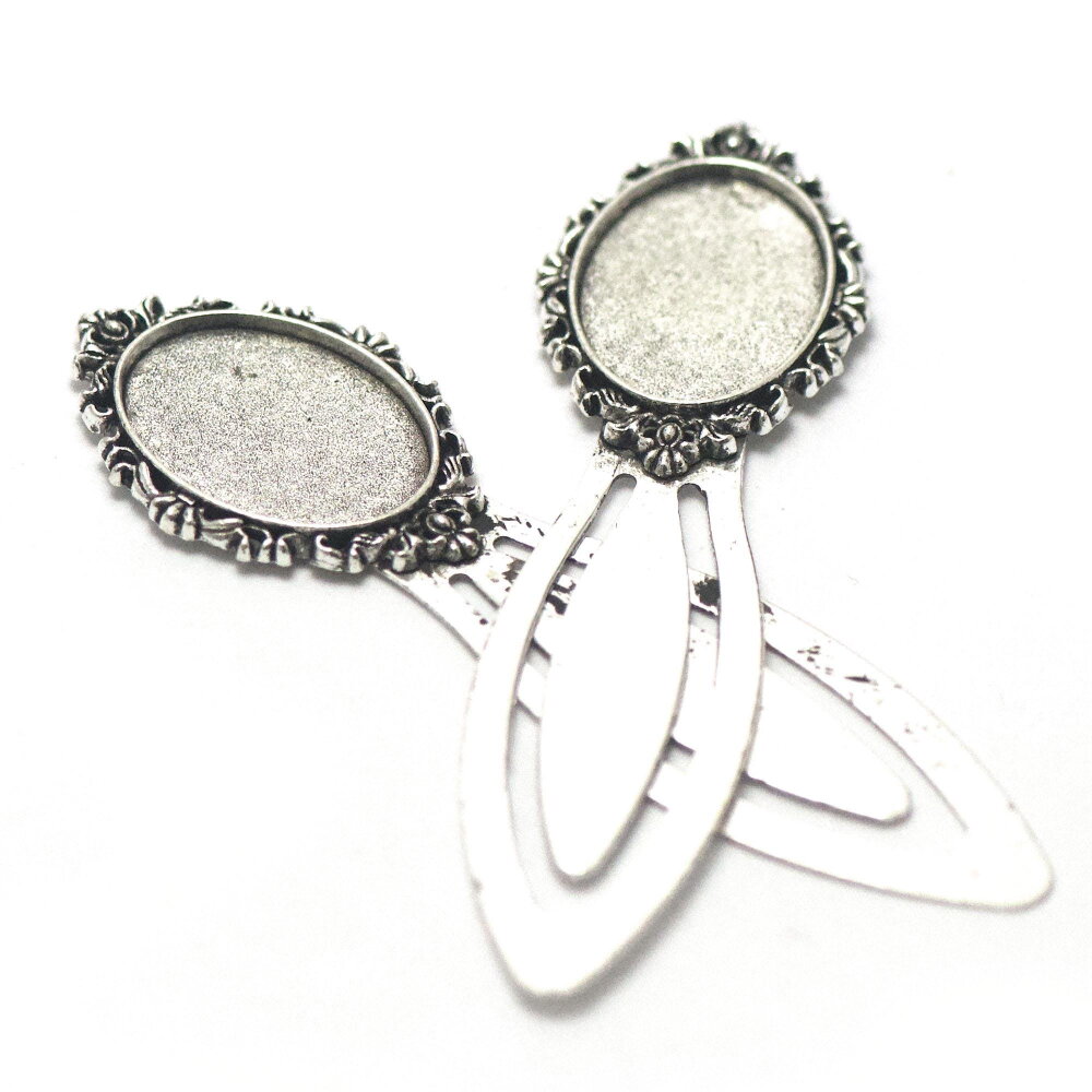 C - 2 marques page support cabochon oval 25x18 mm, argenté/bronze