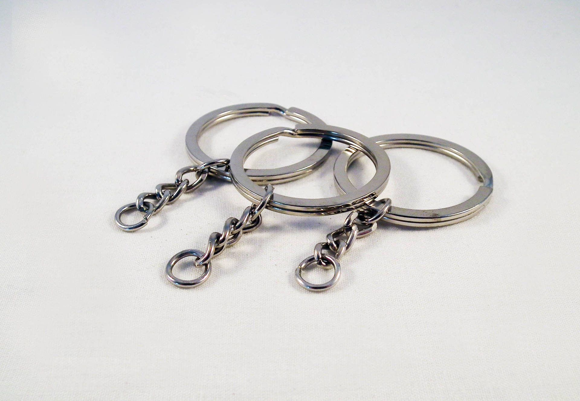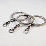 Lot de 3 Supports Anneaux Argenté pour porte-clés avec chaîne de 55mm total en longueur.