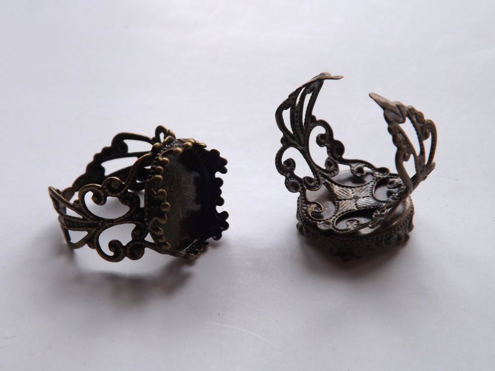 Lot de 3 bagues dentelle ajustables pour cabochon de 15 mm en métal couleur bronze.