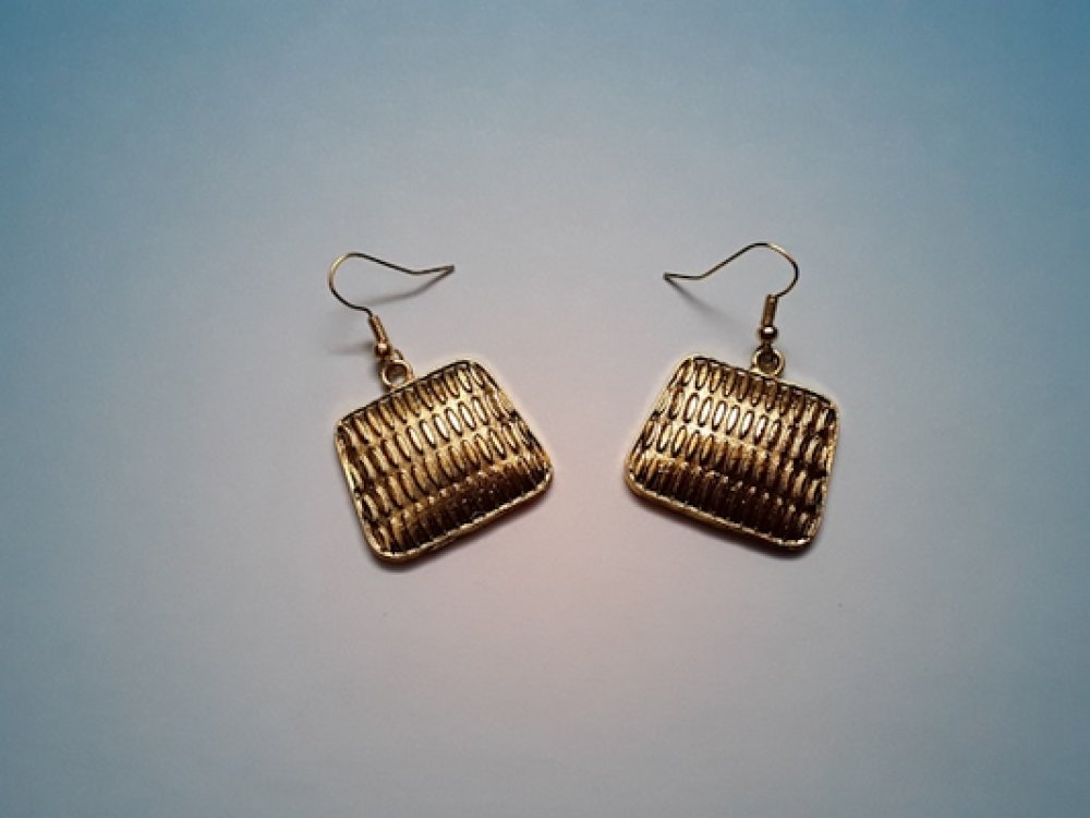 1 paire de boucle d'oreilles 27.5x23.5mm carré doré vieilli ciselée lourde