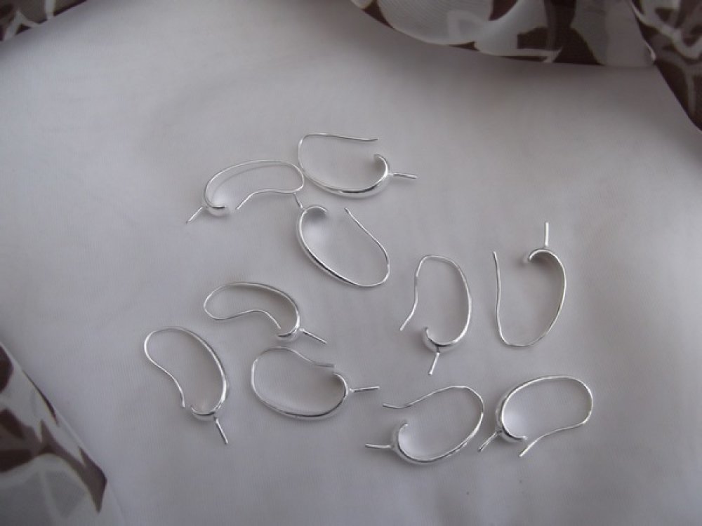 2 Supports de boucle d'oreille 21x13mm crochet hameçon argenté blanc