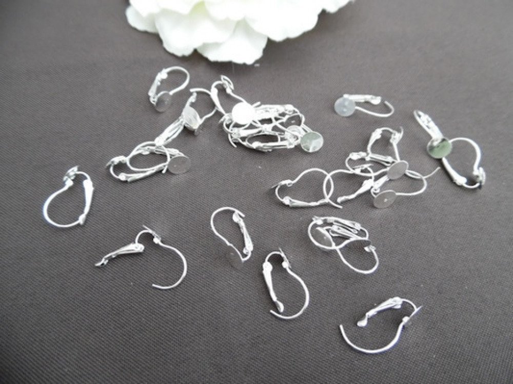 ARTICLE: Lot de 4 Supports de Boucle d'oreille Dormeuse avec Plateau (8mm) pour Cabochon Camée etc... Argenté Blanc Brillant