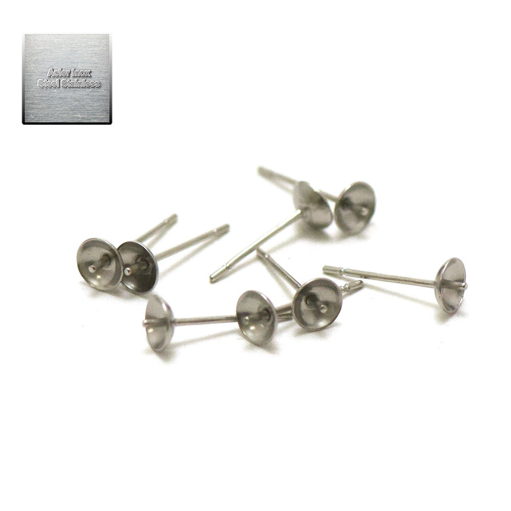 20 supports rond puces d'oreille 5 mm en acier inoxydable, steel stainless