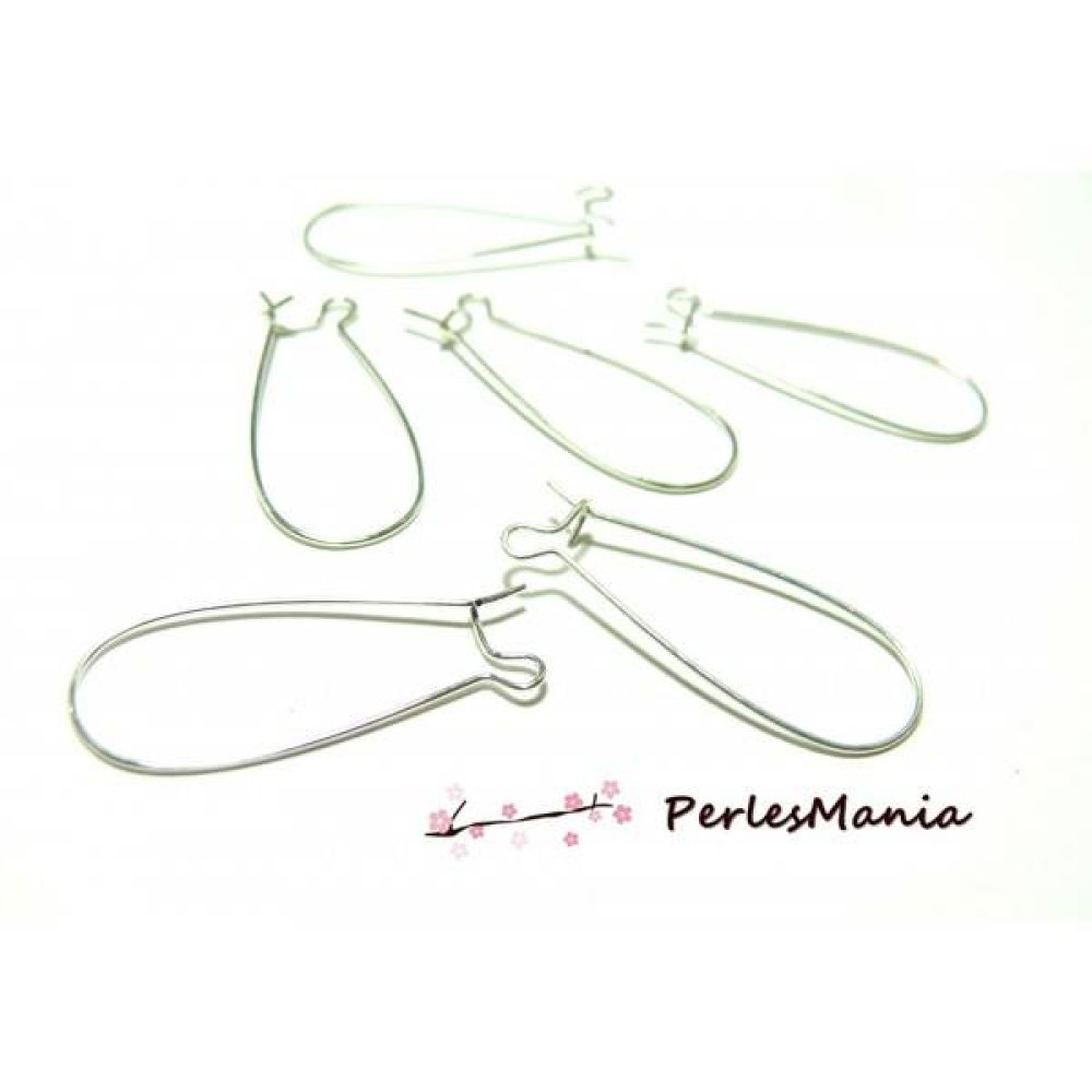 Apprêt pour bijoux: 10 Boucle d'oreille crochets, dormeuses 33 par 14 mmARGENT VIF Dimensions: 33 par 14 par 0.8mm Boucle d'oreille pour création de bijoux Apprêts perlesmania garantis sans nickel, sans plomb et sans cadmium