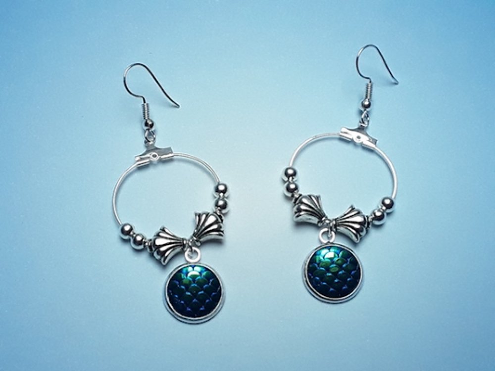 Boucle d'oreilles écaille de dragon 6.5x2.5cm Argent Tibétain