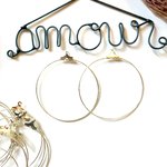 Ce lot est composé de 2 supports de boucles d'oreilles des créoles en métal argenté de 4,5 cm de diamètre, d'autres tailles de créoles en boutique en métal argenté, en métal noir, en bronze