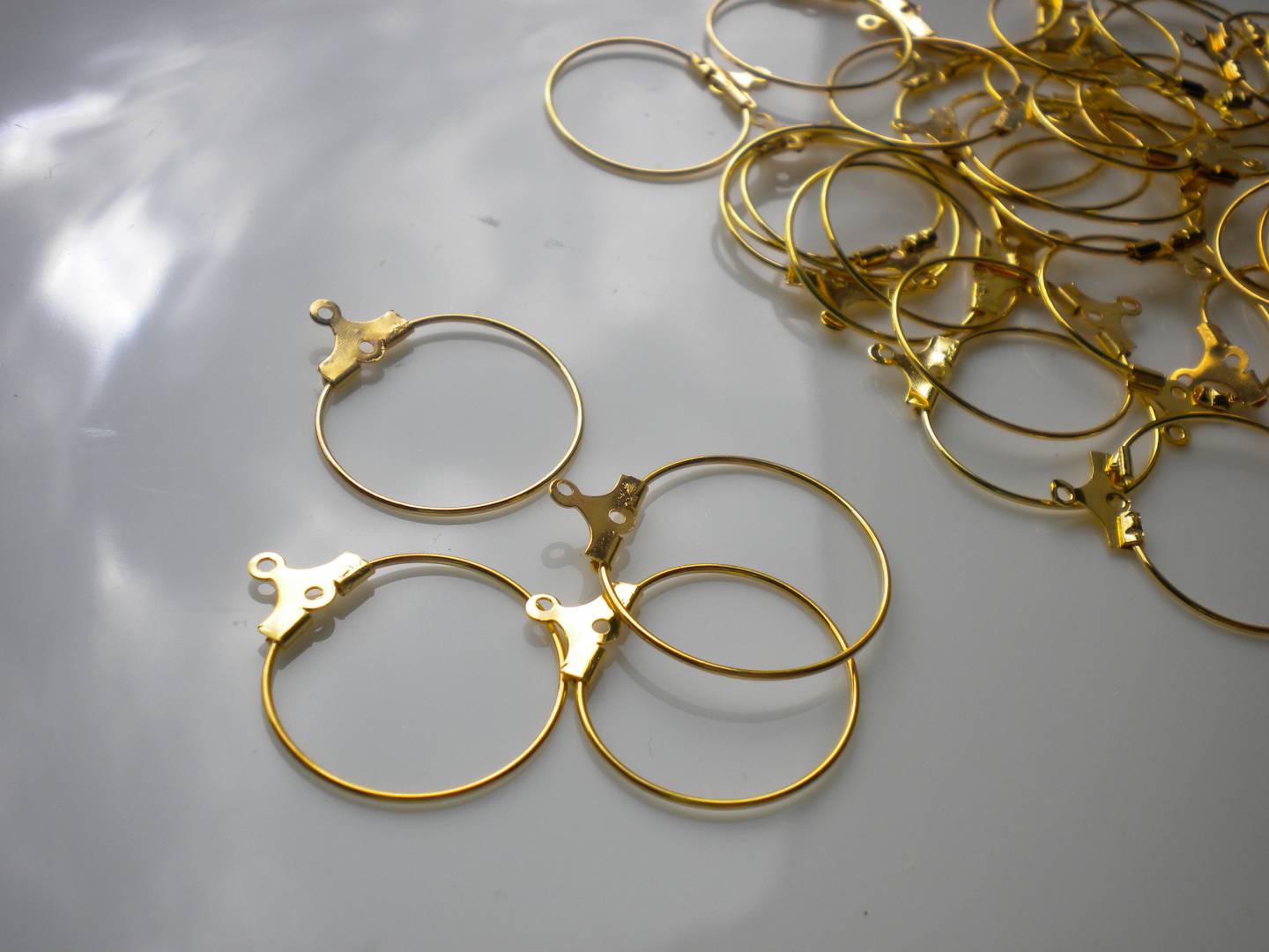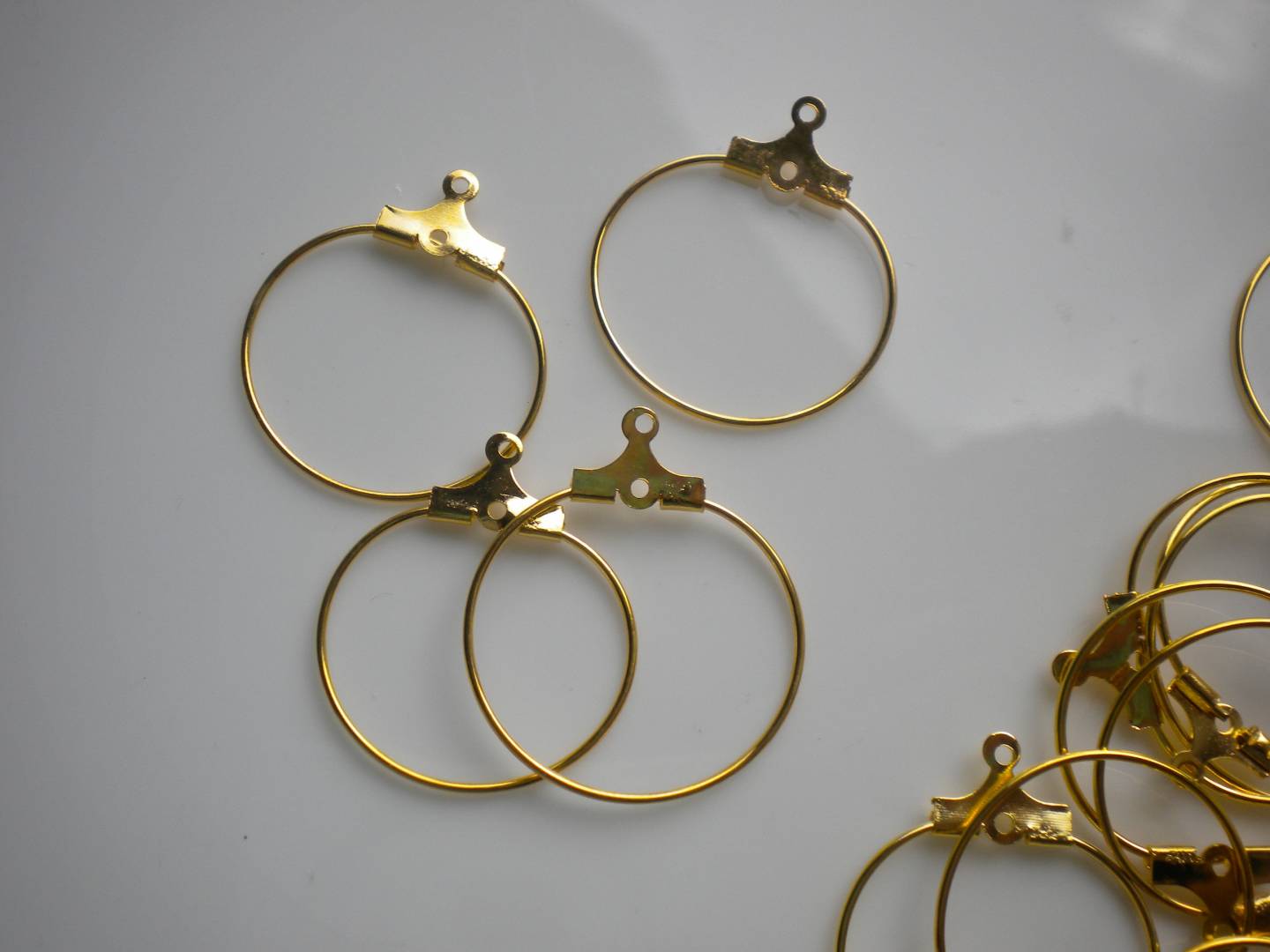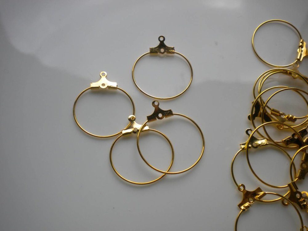 Ce lot est composé de 4 supports de boucles d'oreilles des créoles en métal doré de 2 cm de diamètre.
