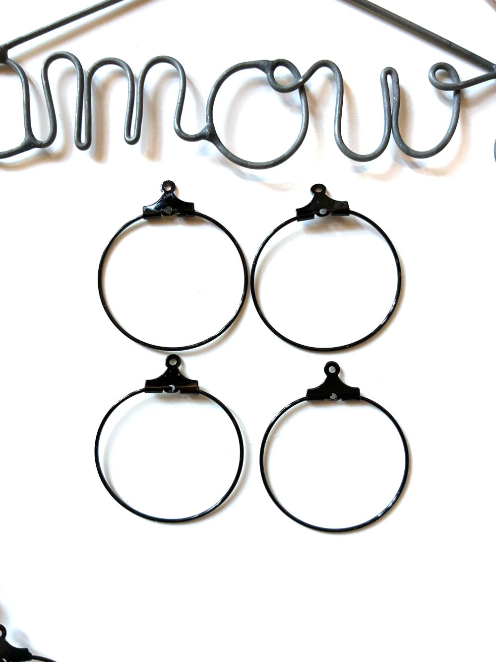 Ce lot est composé de 4 supports de boucles d'oreilles des créoles en métal noir de 2,5 cm de diamètre.