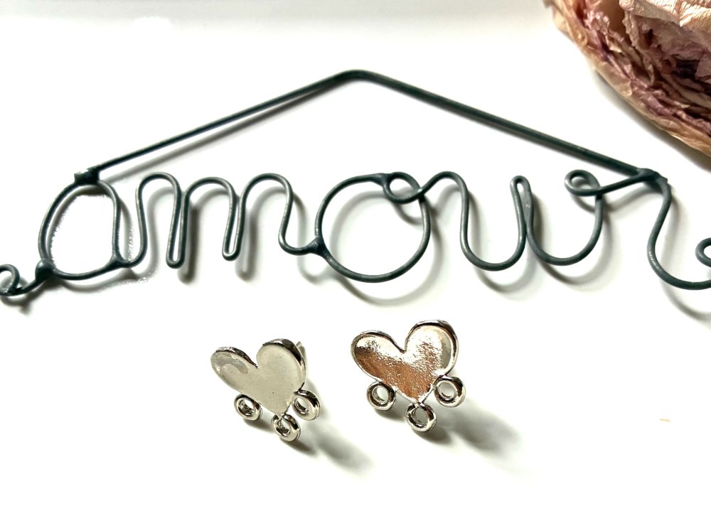 Boucles d'oreilles puces métal argenté coeur 3 piquots- la paire