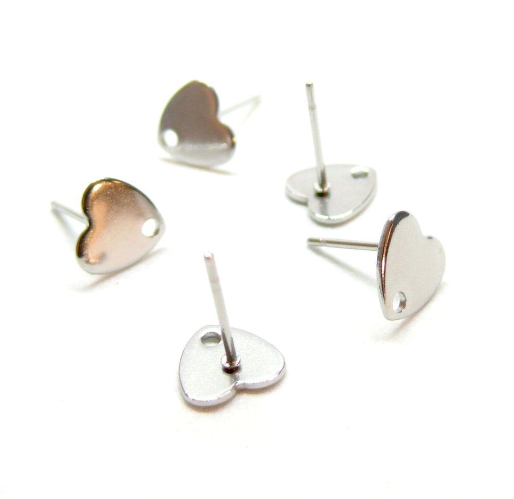 BU112401121455153587 PAX 20 Boucles d'oreilles, Puces Coeur 8mm avec trou, Acier Inoxydable 304, finition Argenté
