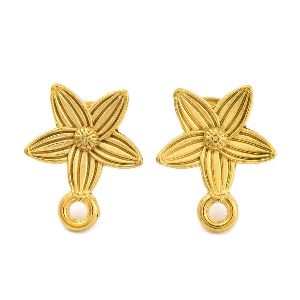 Clou d'oreille fleur en acier inoxydable doré 19 mm puce d'oreille fleur doré