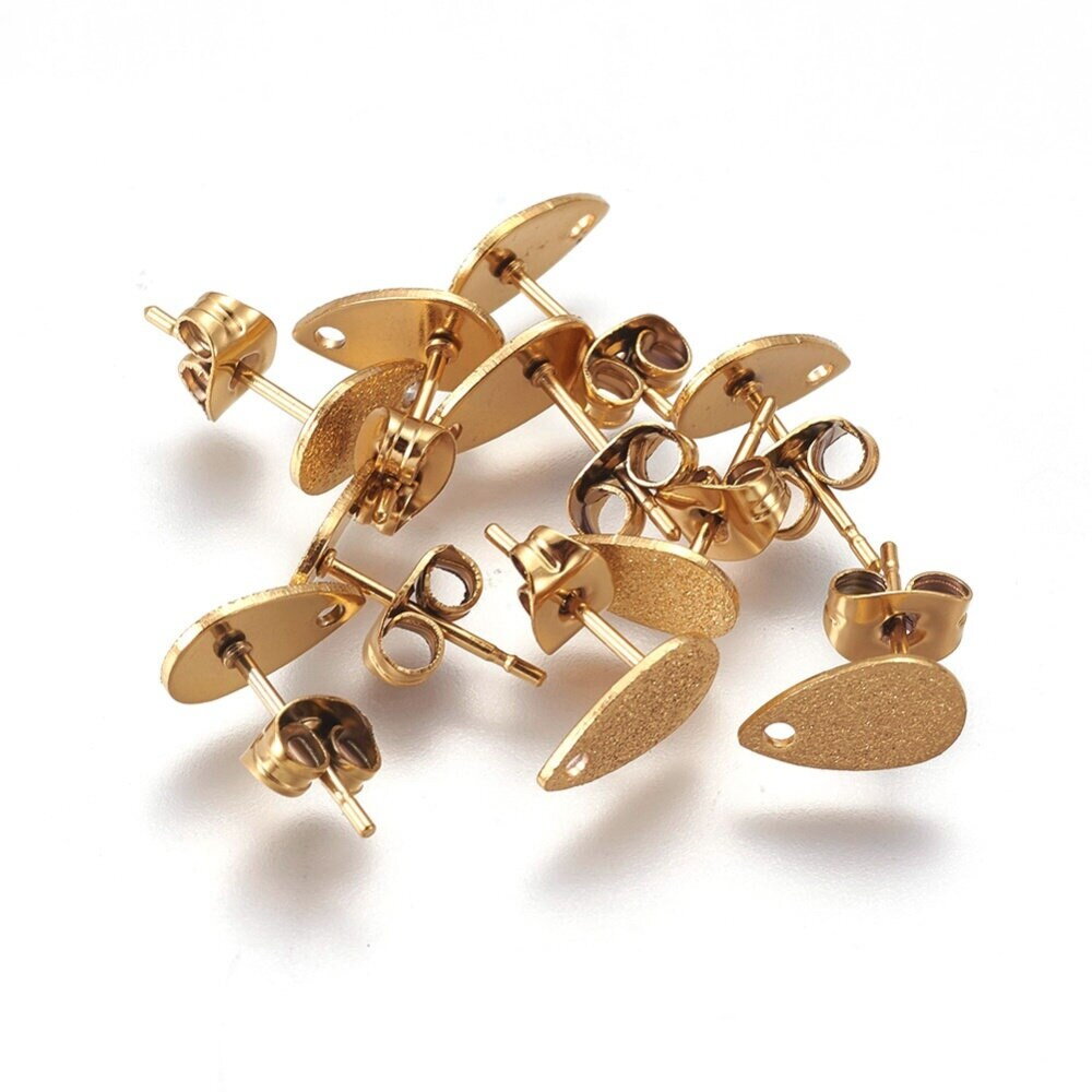 Clou d'oreille goutte doré Support boucle d'oreille goutte en acier inoxydable doré 10x6 mm