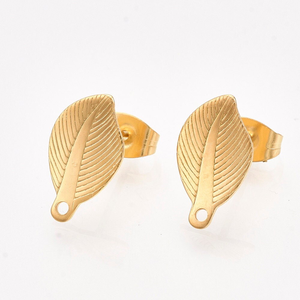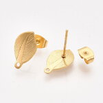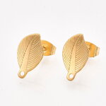 Support boucle d'oreille feuille acier inoxydable 13,5 x 8 mm puce d'oreille doré C9-05