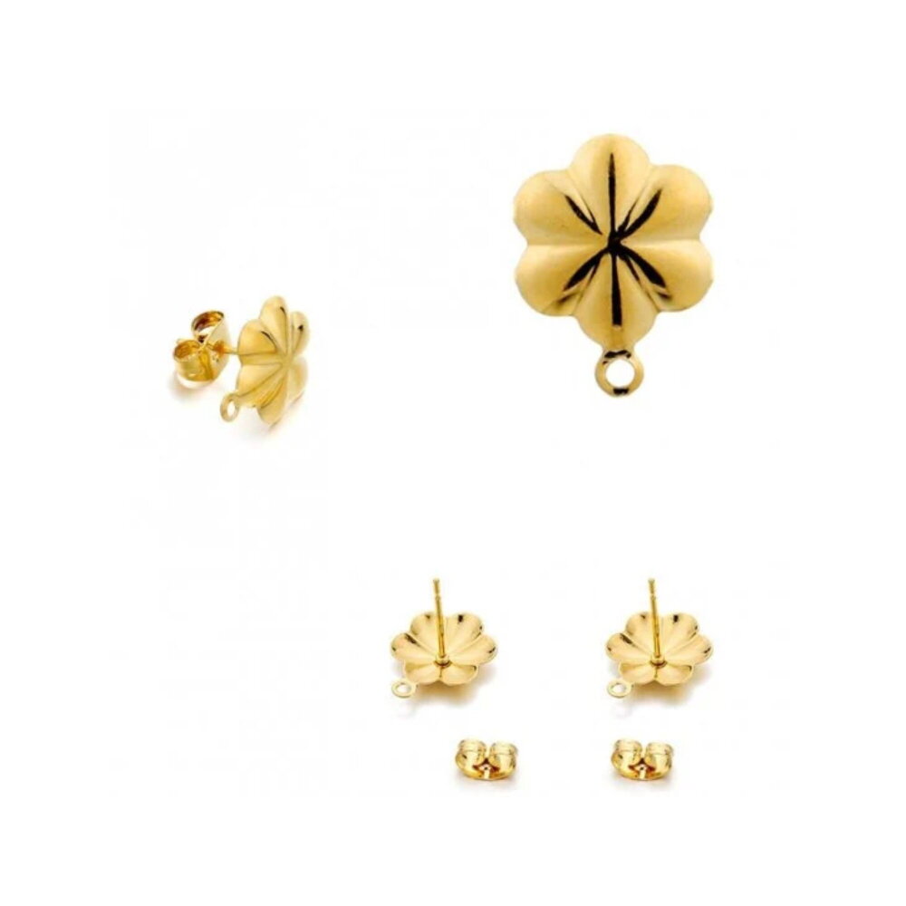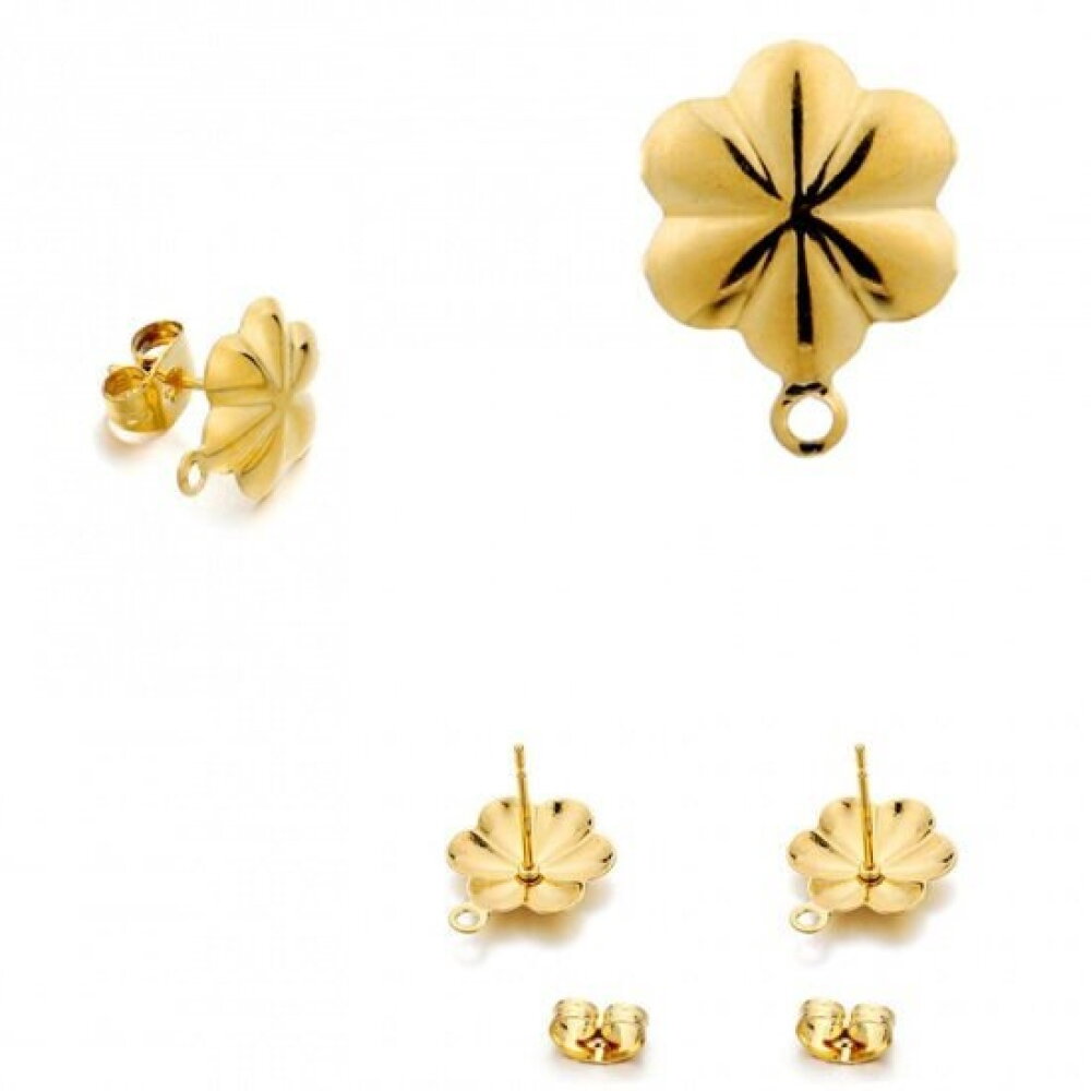 Support boucle d'oreille fleur en acier inoxydable 304 doré 13 mm puce d'oreille doré