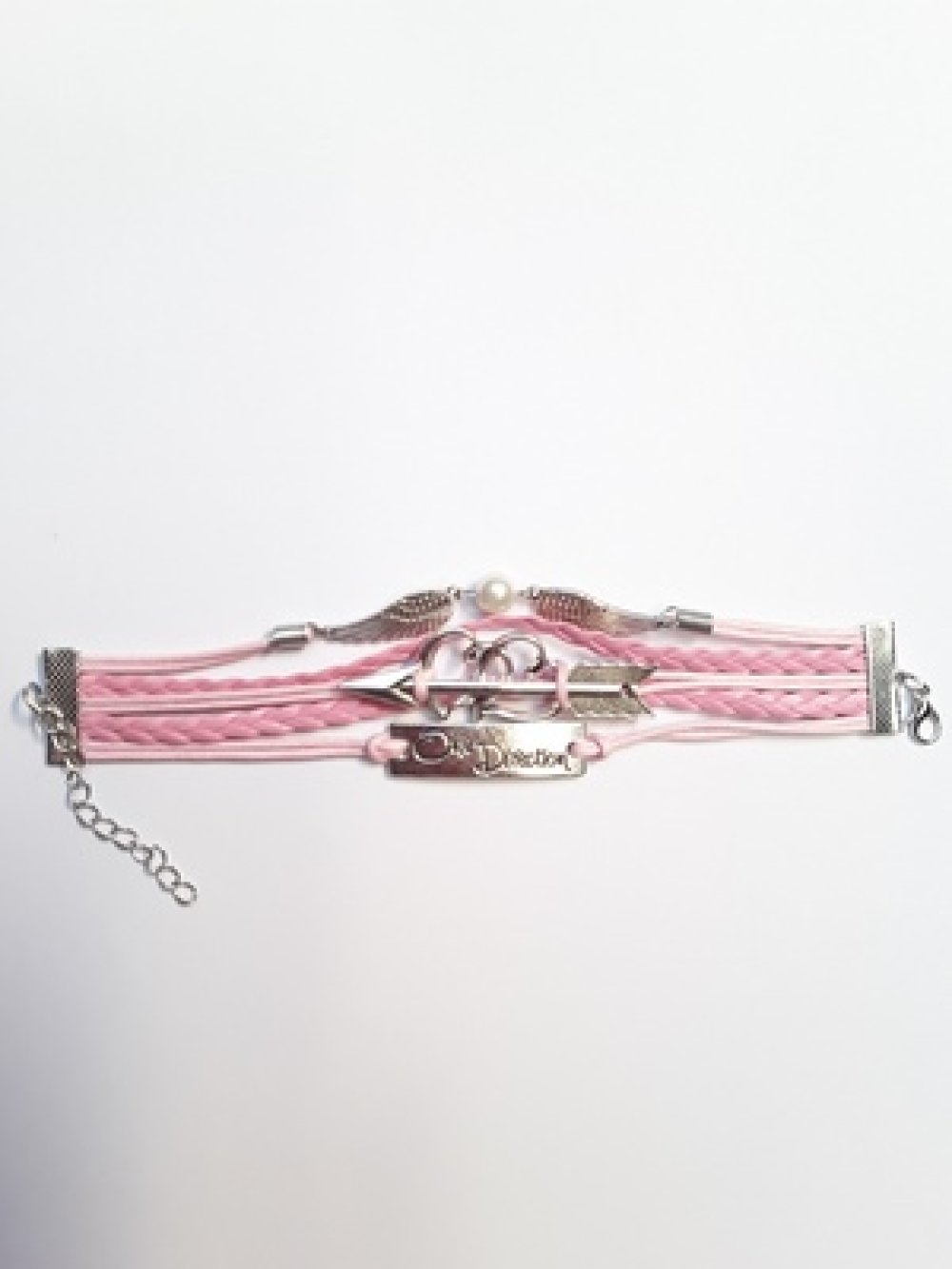 1 bracelet 16cm coton enduit rose coeur aile flèche direction argent tibétain simili cuir