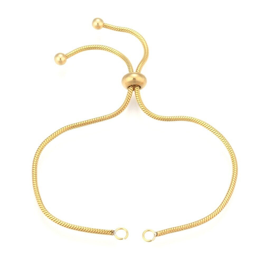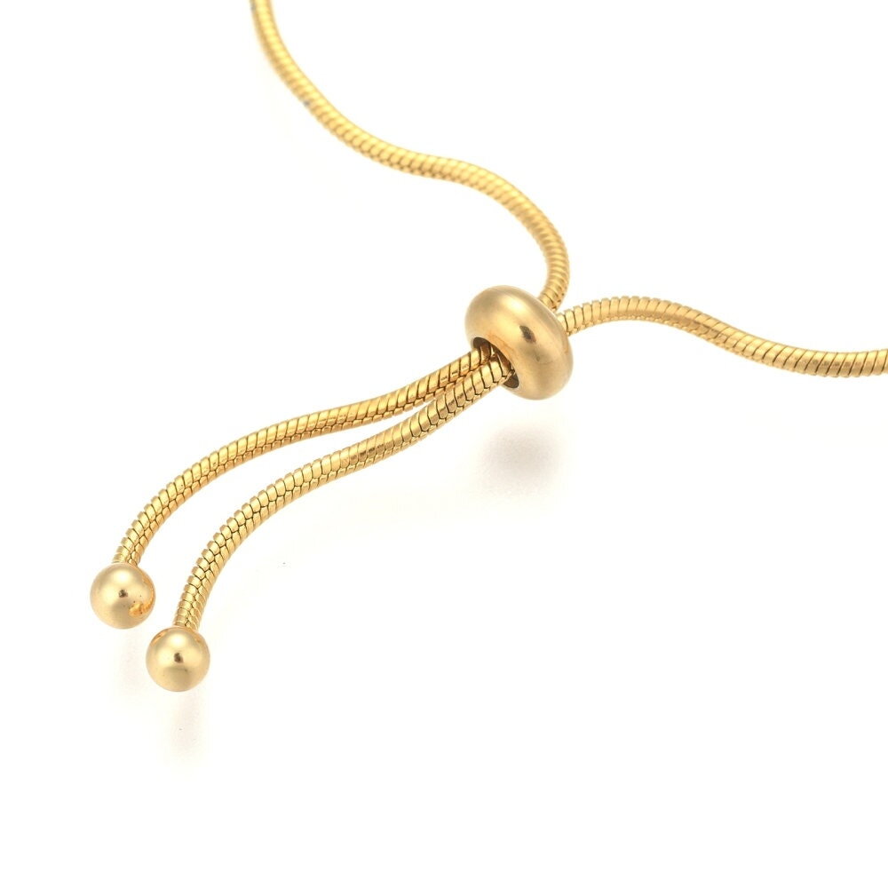Bracelet bolo chaîne serpent réglable avec anneaux d'attaches perles stopper en acier inoxydable 23 cm bracelet doré