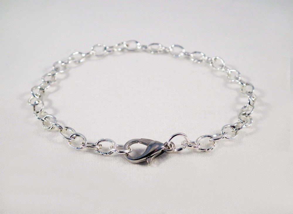 Support Bracelet 18cm Mailles 5mm X 3.3mm avec Fermoir à mousqueton Argenté, en Fer, Longueur 18cm.