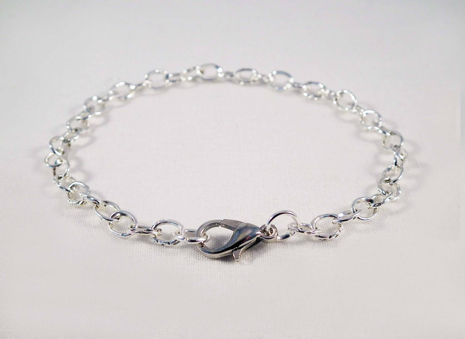 Support Bracelet 20cm Mailles 5mm X 3.3mm avec Fermoir à mousqueton Argenté, en Fer, Longueur 20cm.