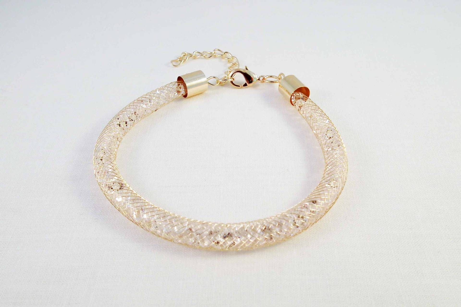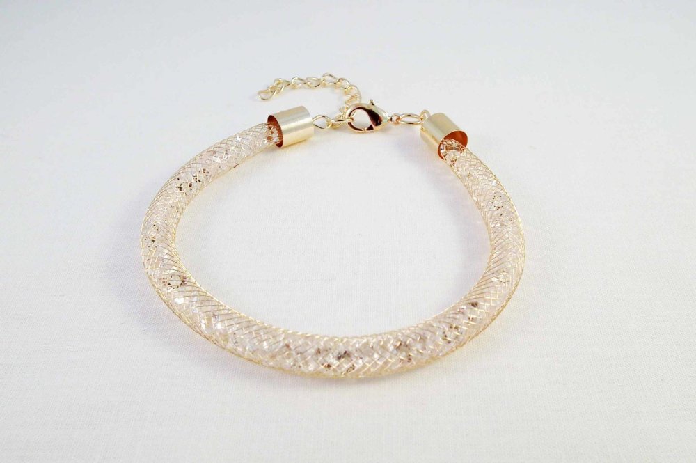 Support Bracelet à strass Effet Brillant de couleur Doré Reflets Rose avec fermoir à mousqueton, Longueur ajustable 18cm à 23cm.