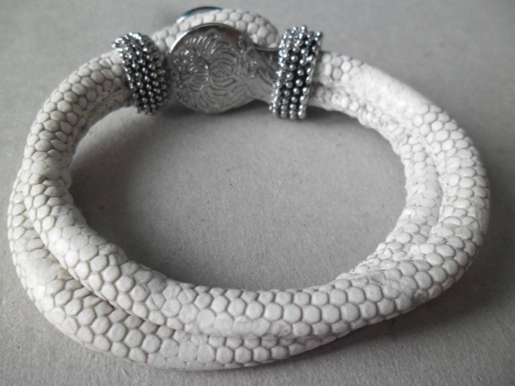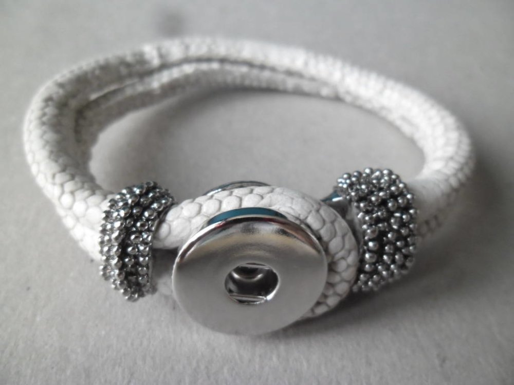 ce très beau bracelet en cuir de couleur blanc PU pour bouton pression DIY argenté.