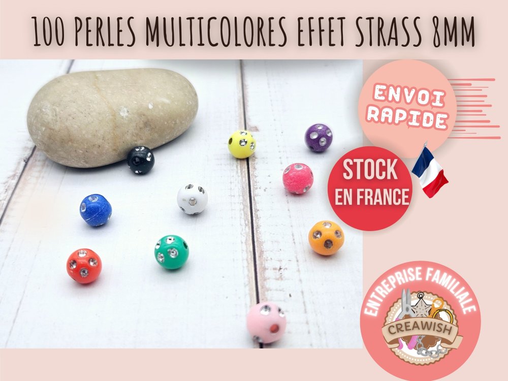 100 perles multicolores effet strass 8mm