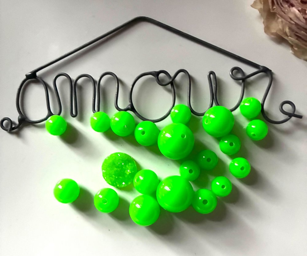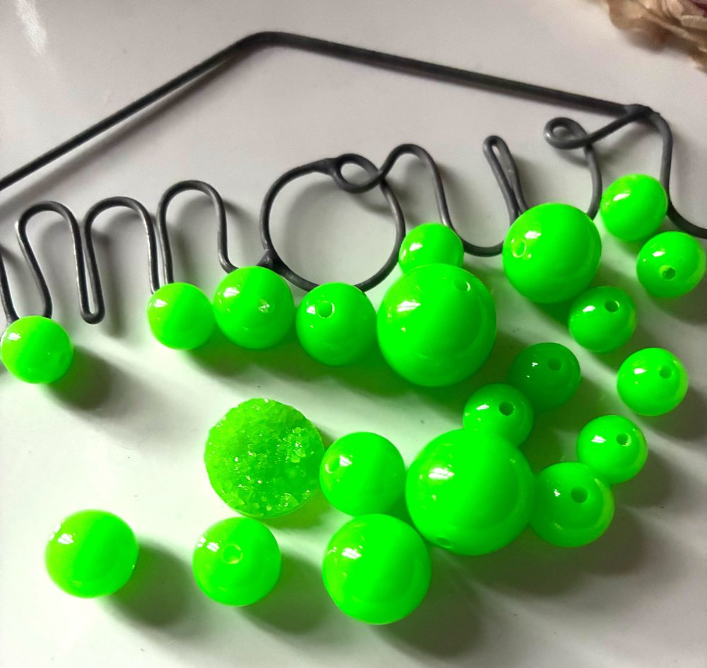 Ce lot est composé de 20 perles synthétiques rondes en vert fluo, dimension de 7mm à 15mm.