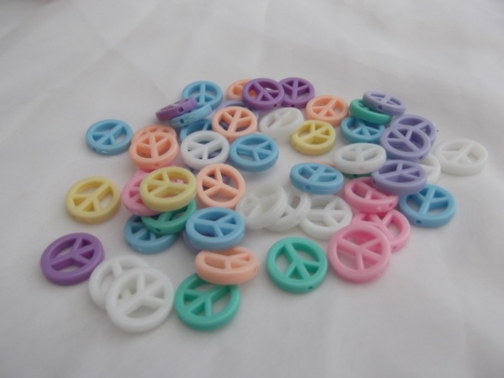 Lot de 10 perles symbole de paix 17mm mixtes pastels acrylique