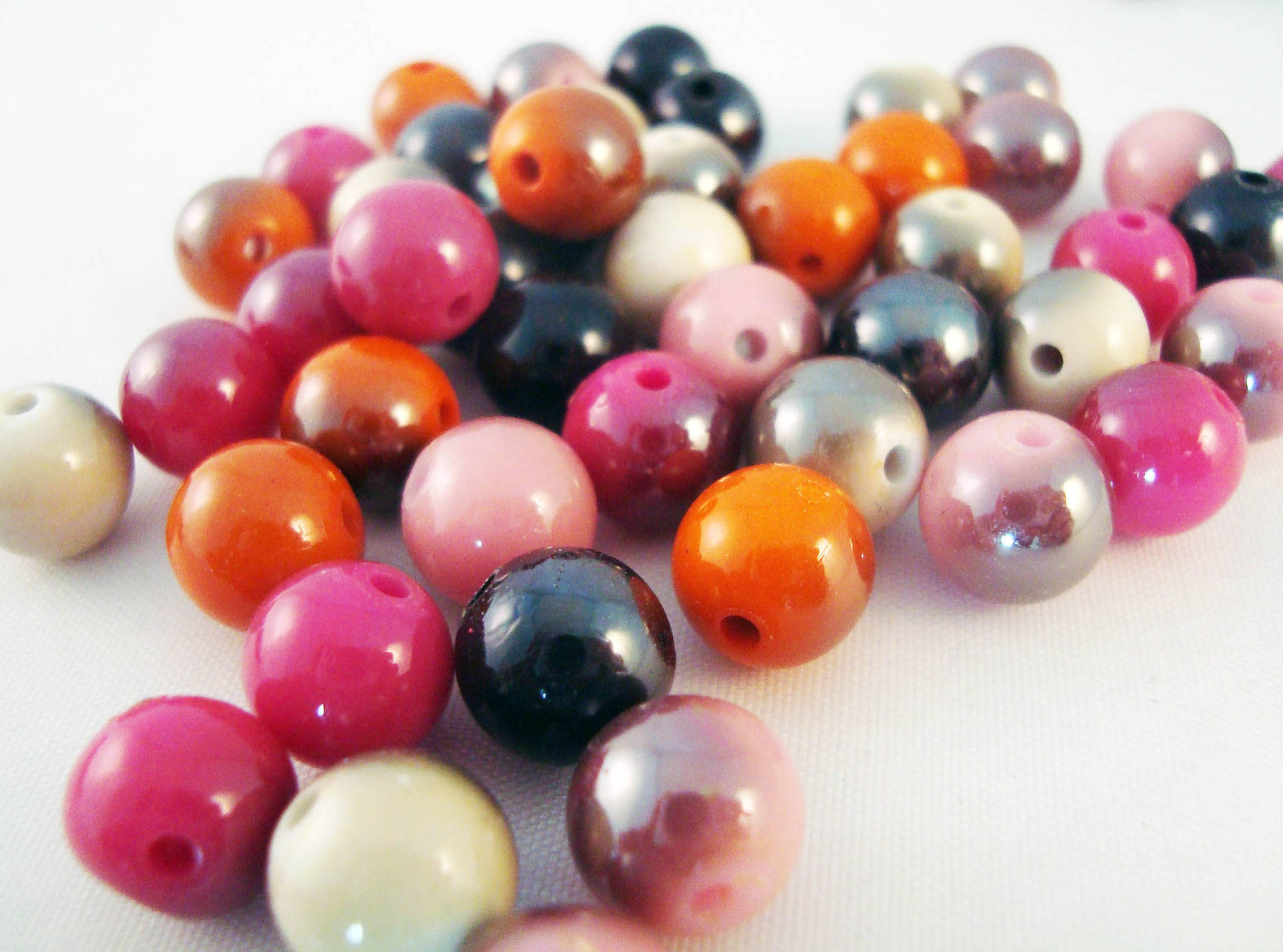 Lot de 100 Perles magiques ton sur ton de couleurs Mixtes, Diamètre 10mm