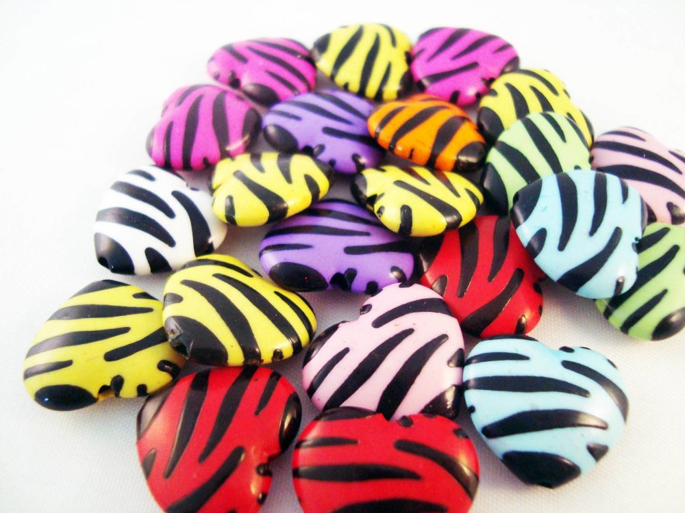Lot de 25 Perles Zébrées de couleurs Mixtes en forme de Coeur