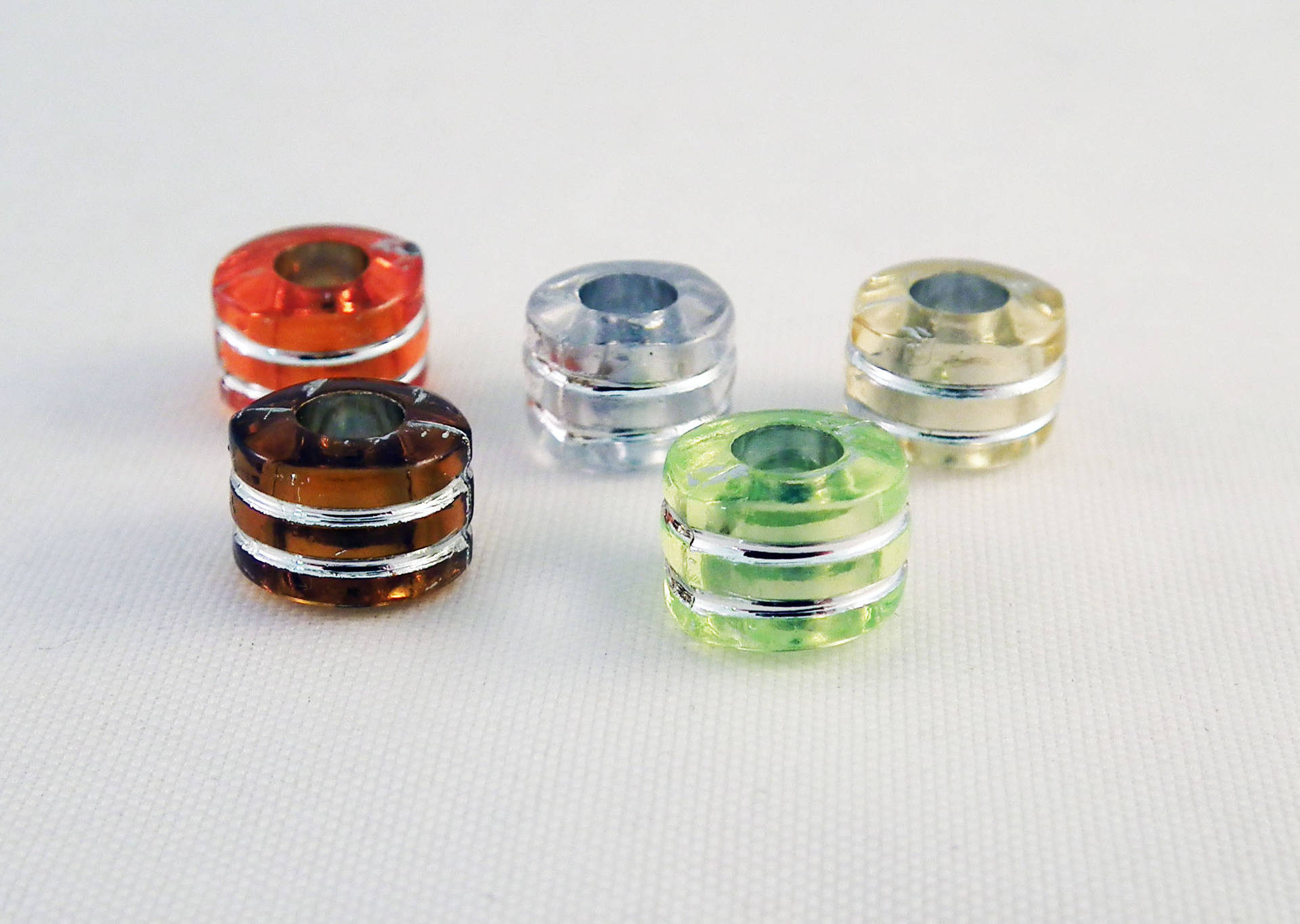 Lot de 5 Perles à motifs rayures de couleurs Mixtes Transparent de 8mm X 6mm, Taille de trou 3mm.