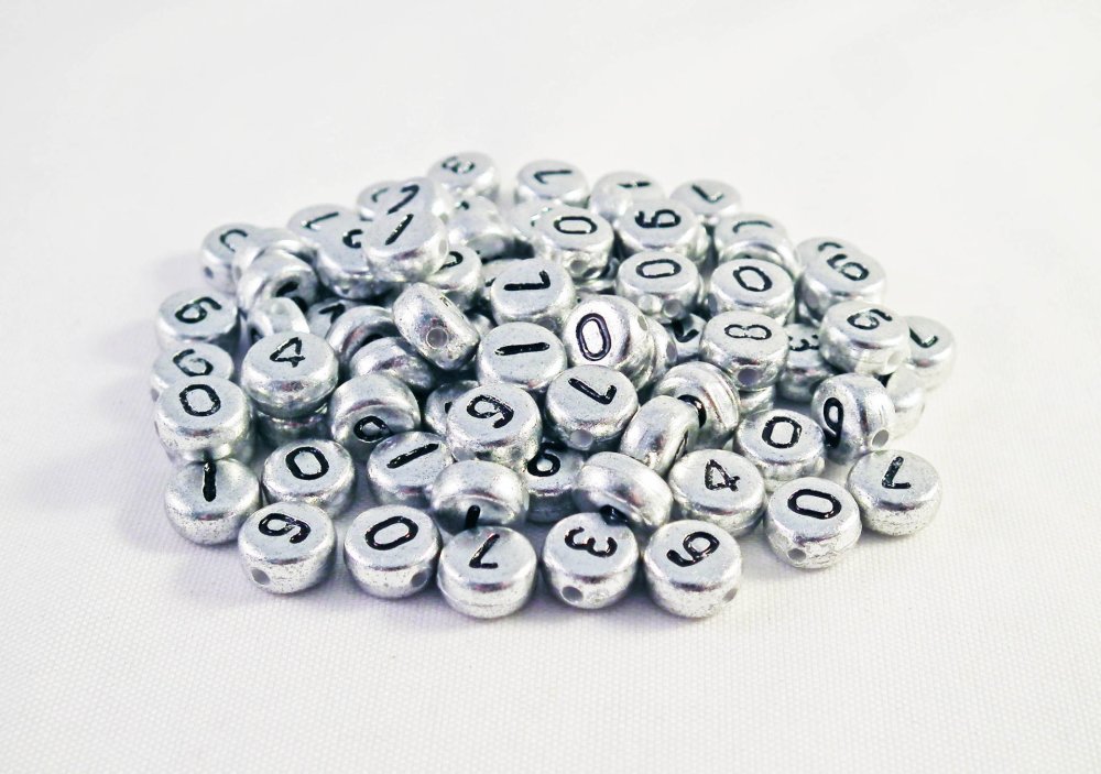 Lot de 500 perles numérotées de 0 à 9 de 7mm de couleur Argent Métallique