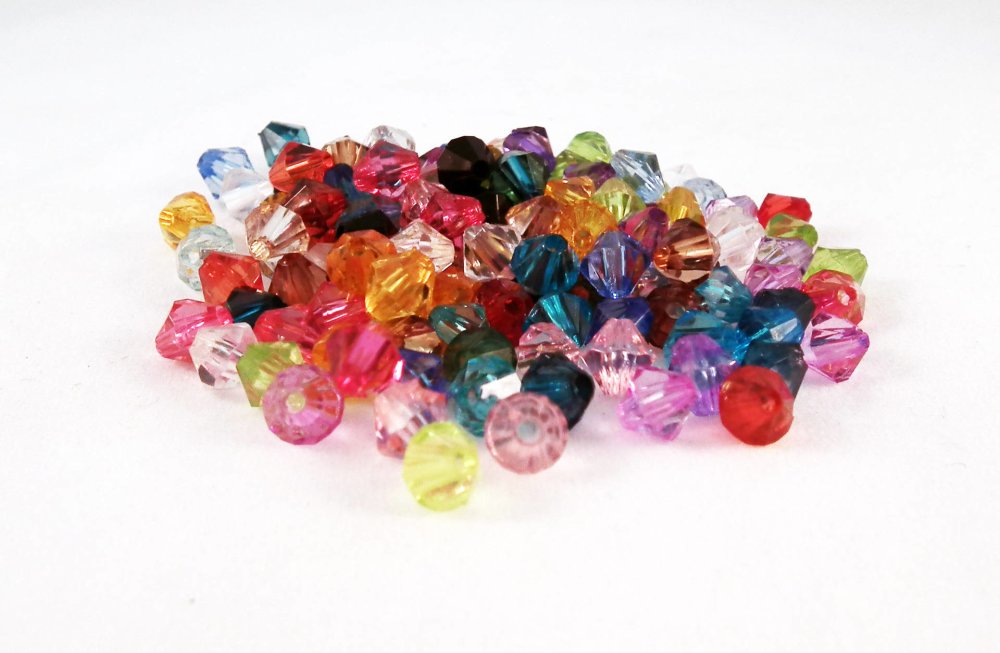 1000 Perles intercalaires en acrylique, bicône toupis, de couleurs mixtes, 6mm X 6mm.