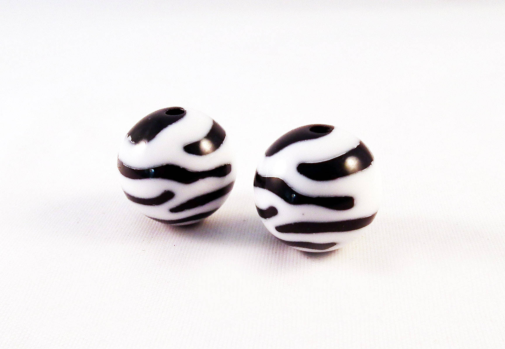 Lot de 2 perles zébrées, 15mm de diamètre, Taille de trou 2,5mm.