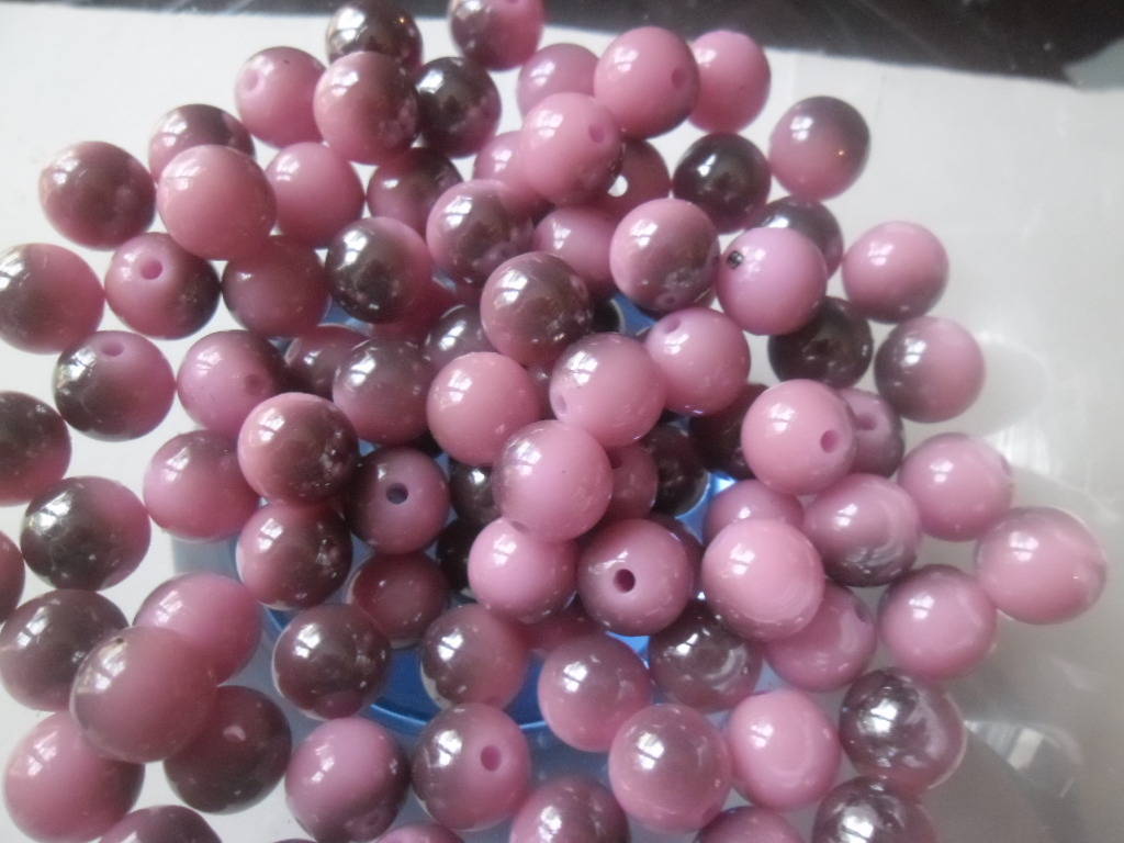 ces très belles perles en lot de 10 de forme ronde en acrylique de couleur rose et gris de 10 mm de diamètre.